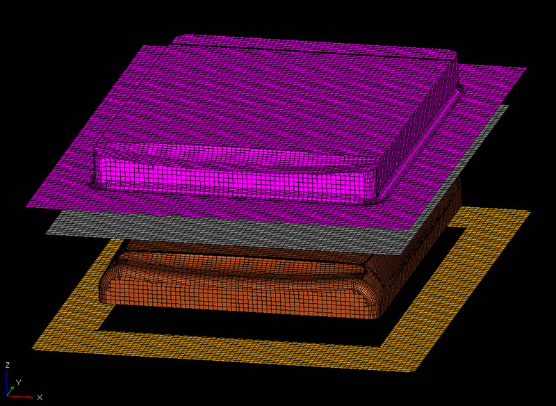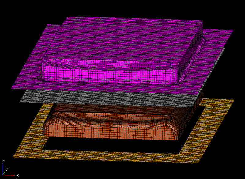CAE, using up-to-date intelligent technology, drives in predicting the optimum part geometry and stamping scenario, allowing our CAD designers to identify, test and validate, before design release and “before the first-swarf-fall”, the best tool set configuration faster and in a cost-saving way for outstanding final tool performance.